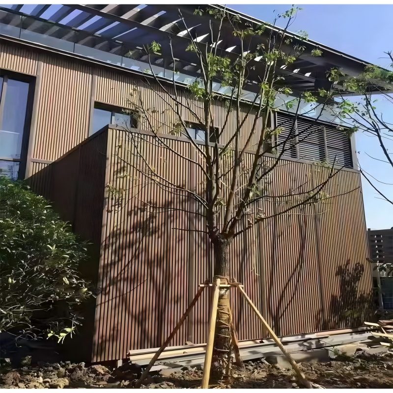 Este proyecto demuestra la aplicación exitosa de Revestimiento exterior de pared de WPC En un parque público, la integración de nuestros materiales logra un equilibrio perfecto entre la estética de la madera natural y la ausencia total de mantenimiento. Se trata de una solución exterior ideal, duradera y ecológica, diseñada a medida para edificios municipales, baños y estructuras recreativas.